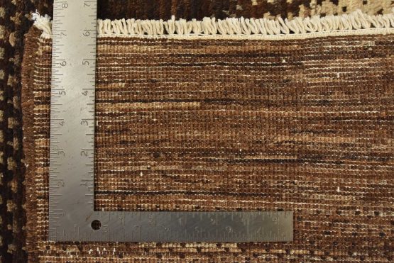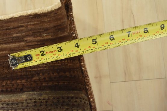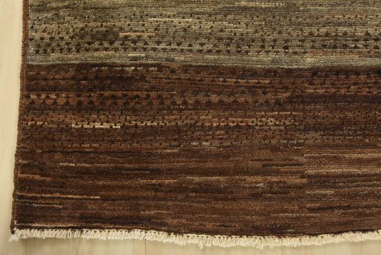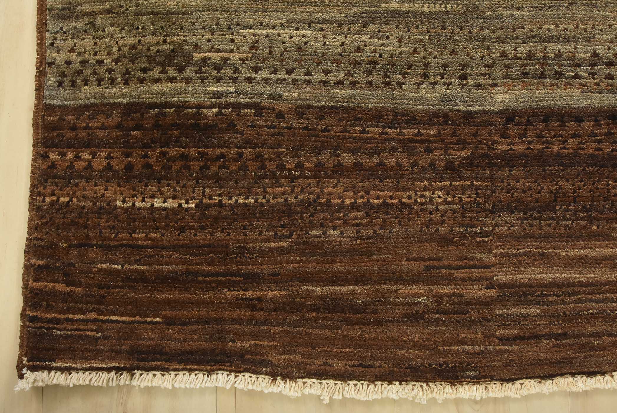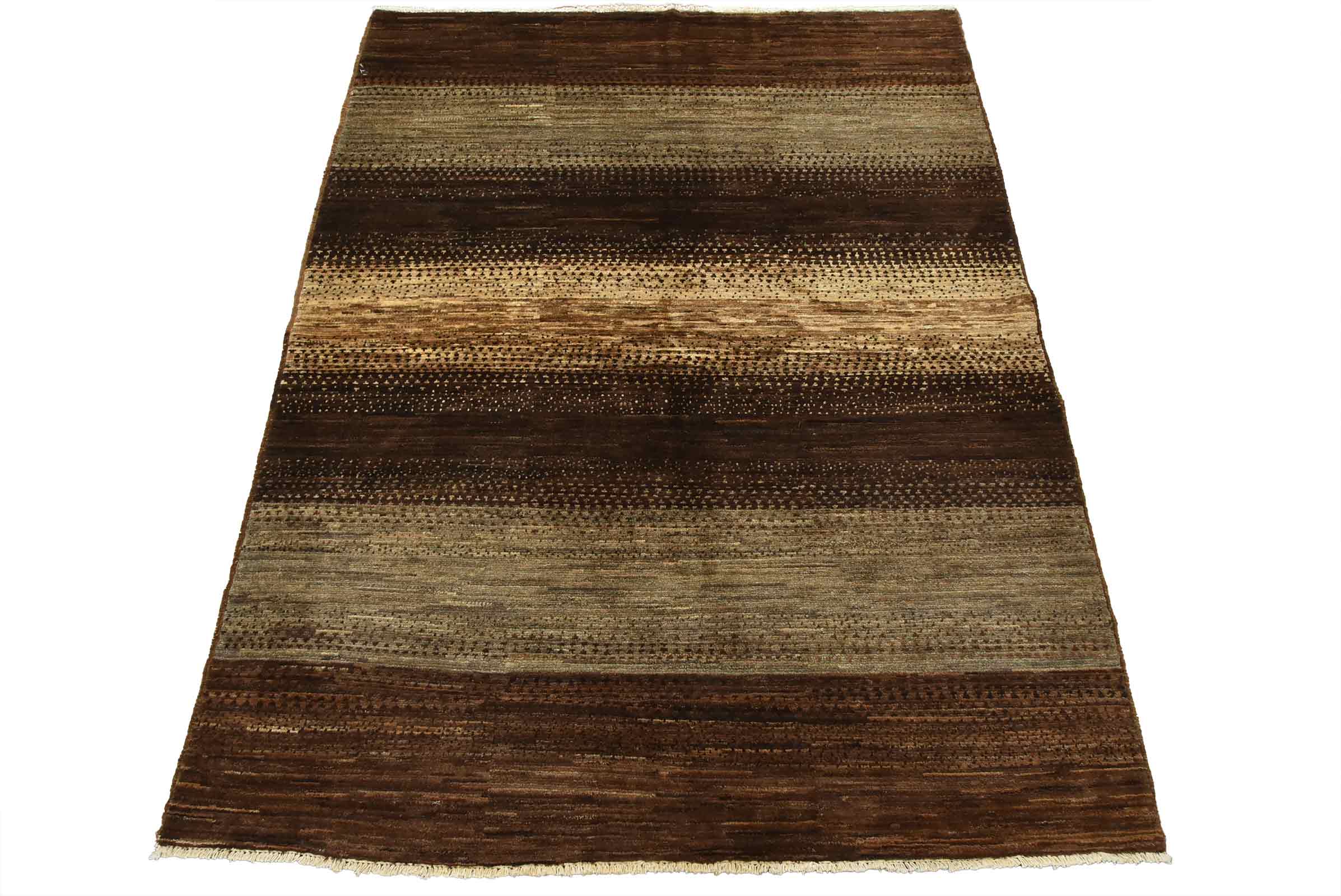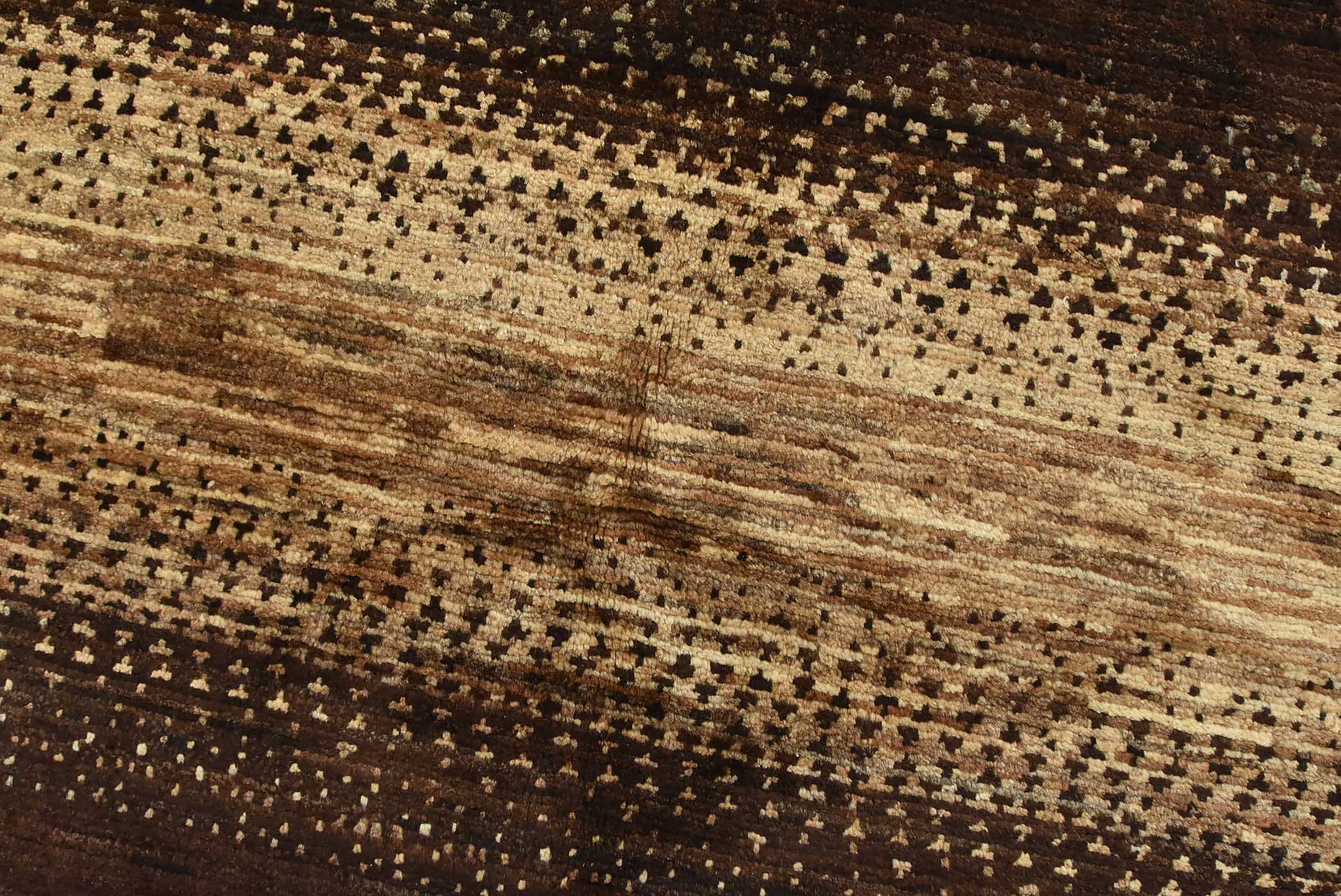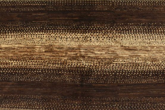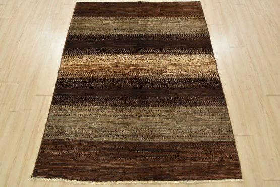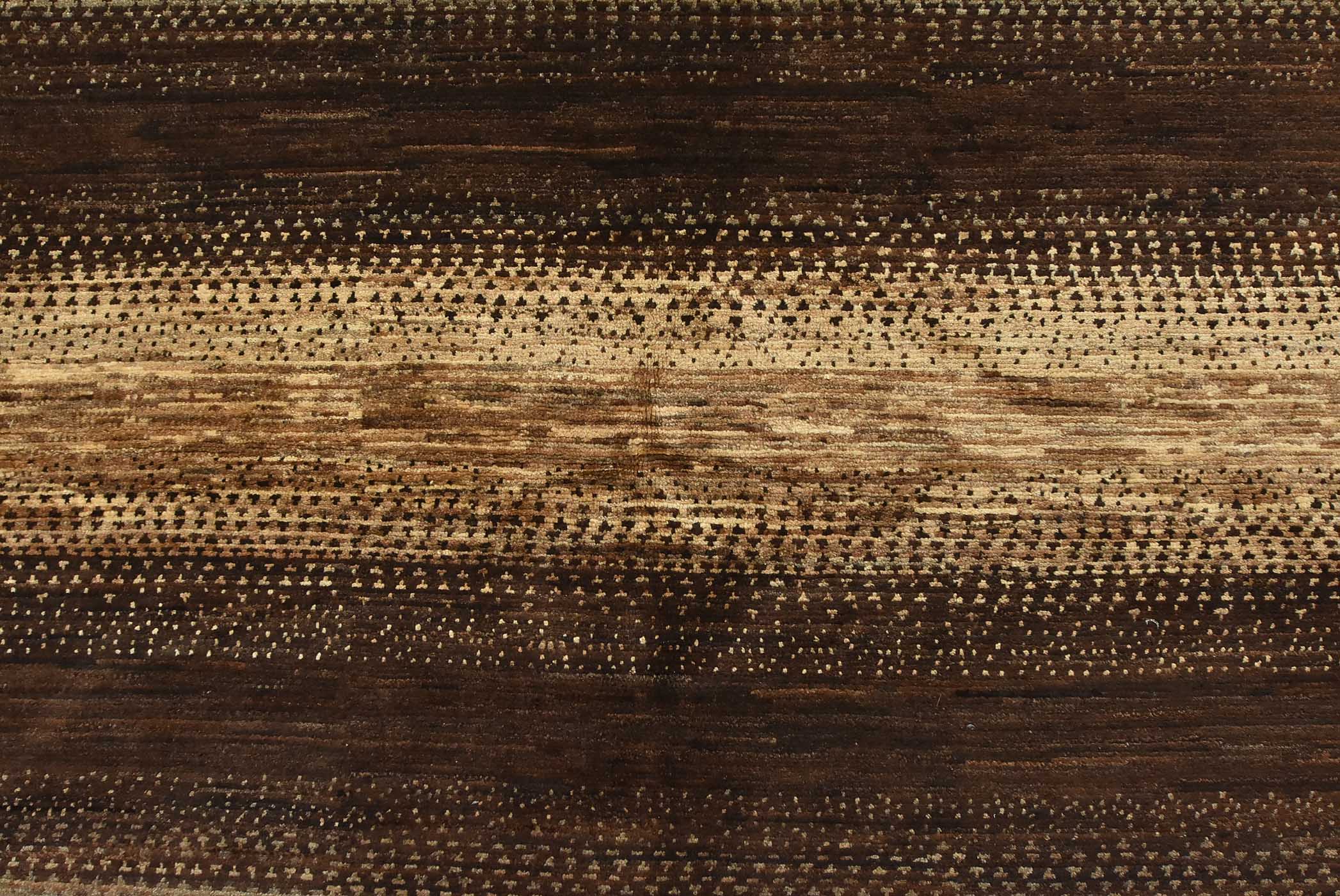 A contemporary Gabbeh rug hand-knotted with fine wool on a cotton foundation. This rug features large stripes in brown and gray. It is new and in excellent condition.
