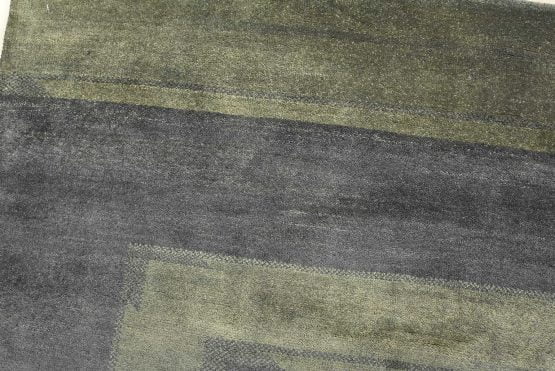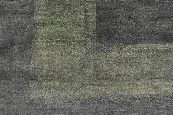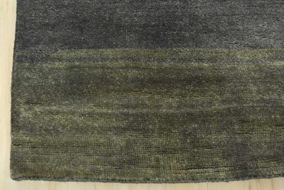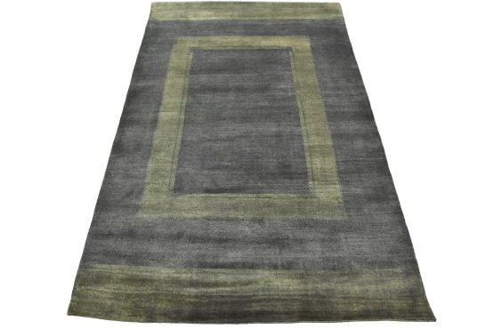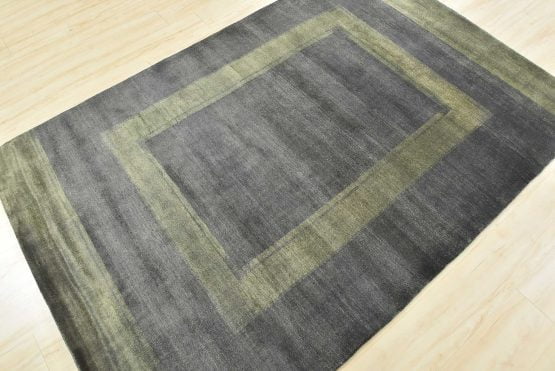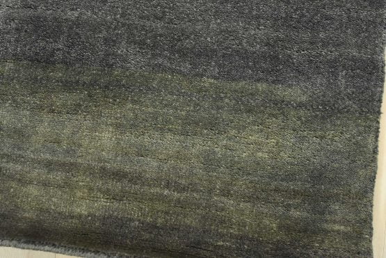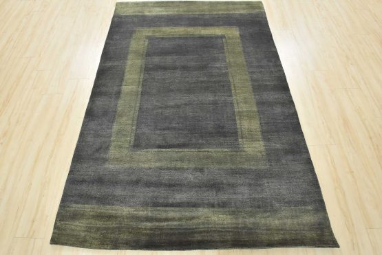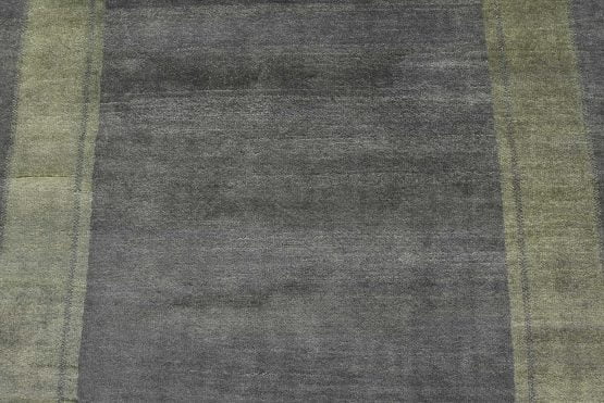 A contemporary Gabbeh rug hand-knotted with an all-wool pile on a cotton foundation. This finely woven area rug features a dark gray background with a lighter gray border. It is new and in excellent condition.