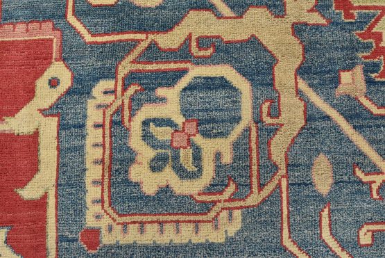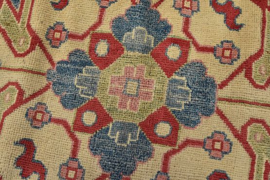 Original antique Kazak rugs from the Caucasus region inspire the creation of new Kazak rugs. These rugs are woven with fine wool using traditional Kazak patterns and finished with a low-cut pile to give them an authentic vintage look.