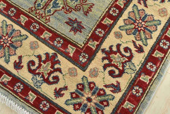 Original antique Kazak rugs from the Caucasus region inspire the creation of new Kazak rugs. These rugs are woven with fine wool using traditional Kazak patterns and finished with a low-cut pile, giving them an authentic vintage look.