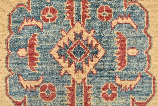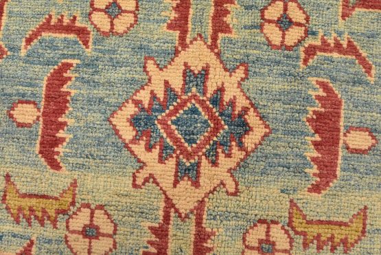 Original antique Kazak rugs from the Caucasus region inspire the creation of new Kazak rugs. These rugs are woven with fine wool using traditional Kazak patterns and finished with a low-cut pile, giving them an authentic vintage look.