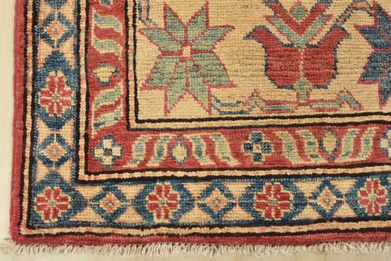 Original antique Kazak rugs from the Caucasus region inspire the creation of new Kazak rugs. These rugs are woven with fine wool using traditional Kazak patterns and finished with a low-cut pile, giving them an authentic vintage look.