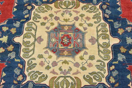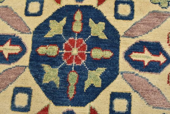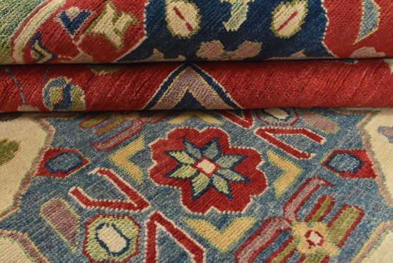 Original antique Kazak rugs from the Caucasus region inspire the creation of new Kazak rugs. These rugs are woven with fine wool using traditional Kazak patterns and finished with a low-cut pile to give them an authentic vintage look.