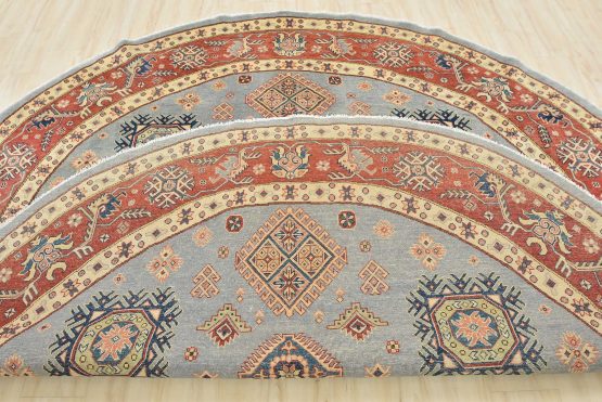 Original antique Kazak rugs from the Caucasus region inspire the creation of new Kazak rugs. These rugs are woven with fine wool using traditional Kazak patterns and finished with a low-cut pile, giving them an authentic vintage look.