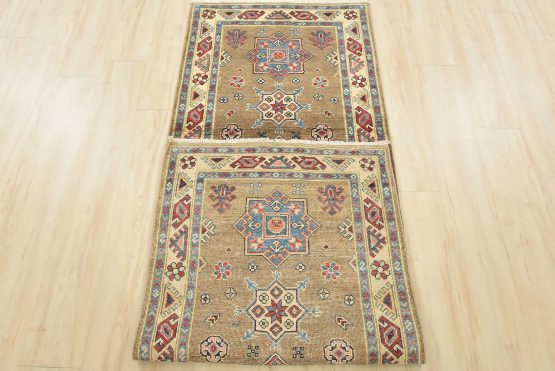 Original antique Kazak rugs from the Caucasus region inspire the creation of new Kazak rugs. These rugs are woven with fine wool using traditional Kazak patterns and finished with a low-cut pile to give them an authentic vintage look.
