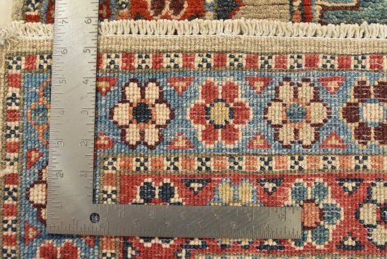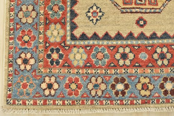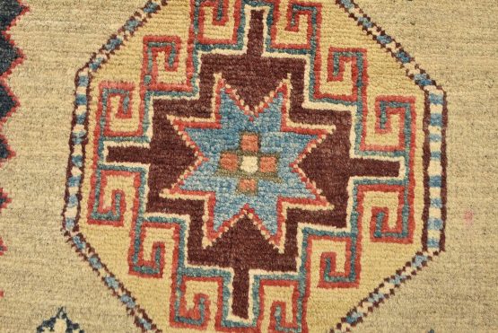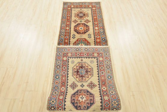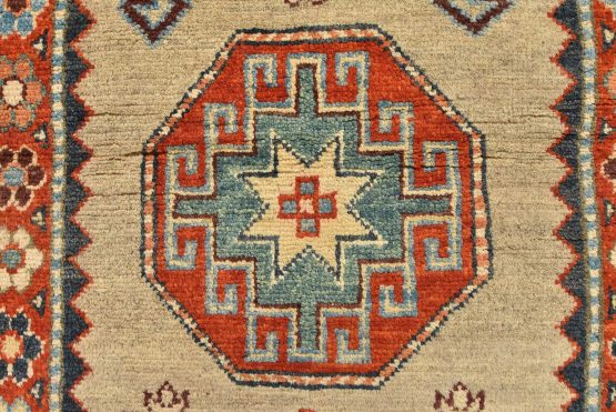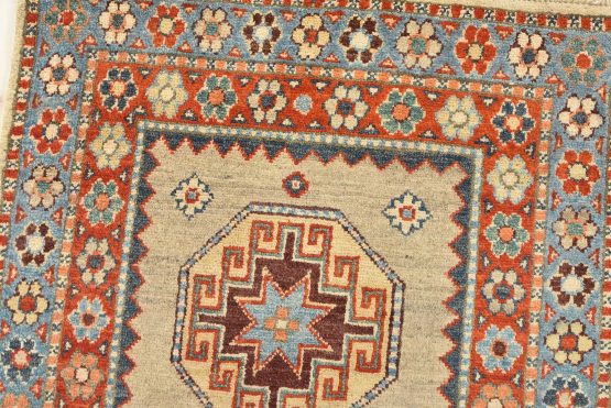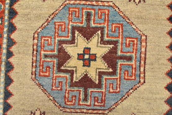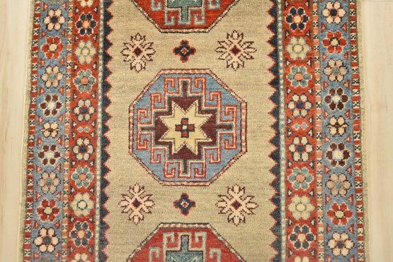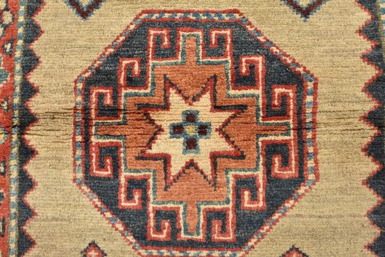 Original antique Kazak rugs from the Caucasus region inspire the creation of new Kazak rugs. These rugs are woven with fine wool using traditional Kazak patterns and finished with a low-cut pile to give them an authentic vintage look.