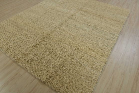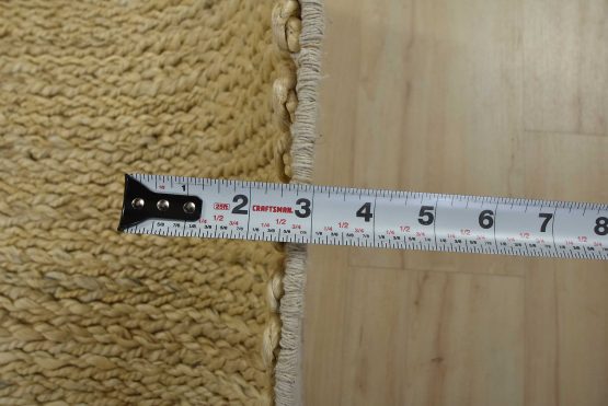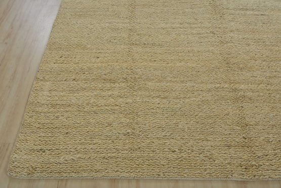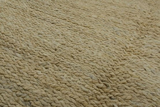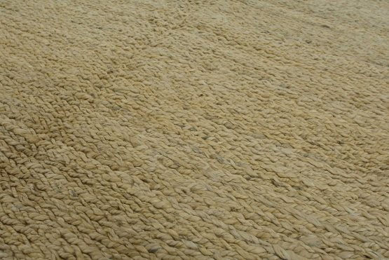 A contemporary braided rug handwoven with an all-jute pile on a cotton foundation. This rug is new and in excellent condition.