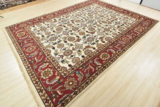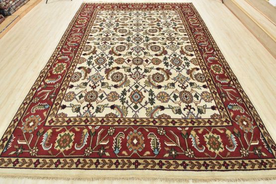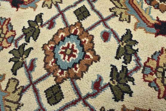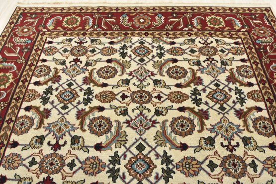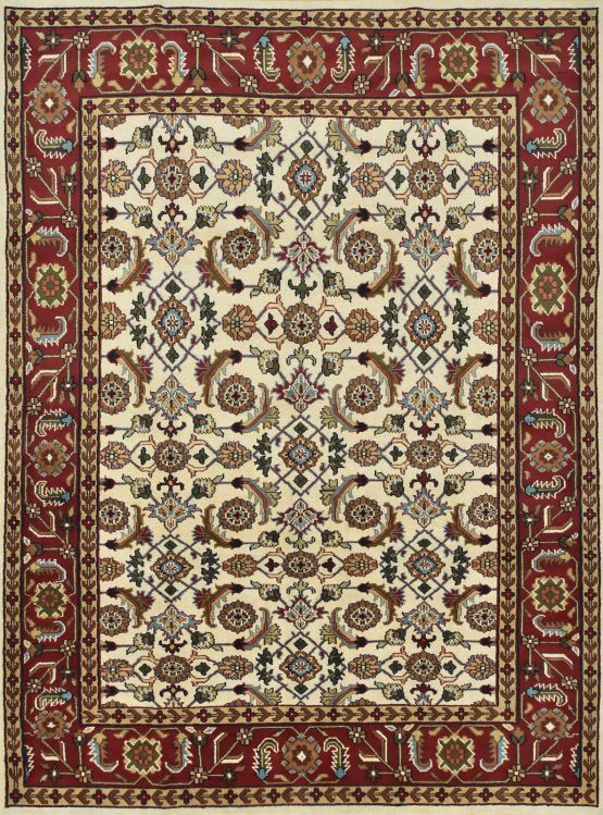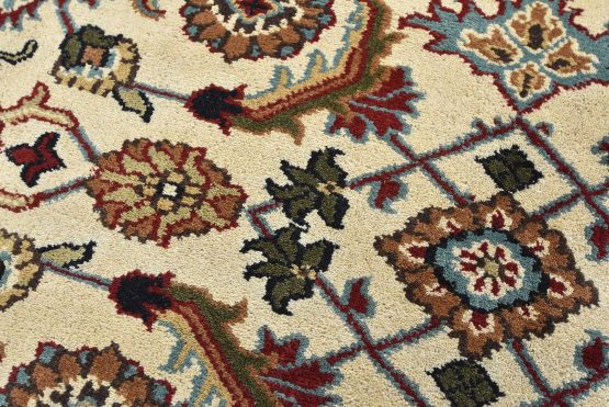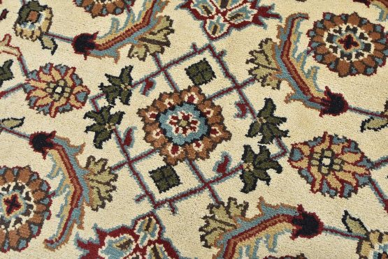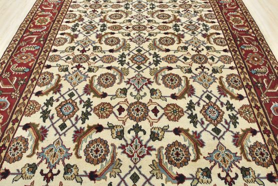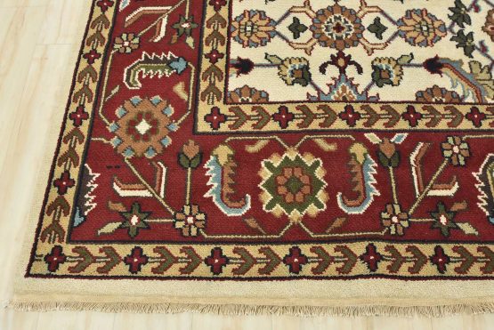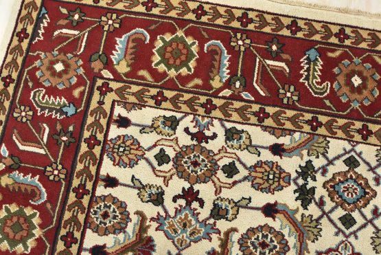 A traditional Herati rug hand-knotted with an all-wool pile on a cotton foundation. This oriental rug features an all-over Herati pattern set against an ivory background. It is new and in excellent condition.