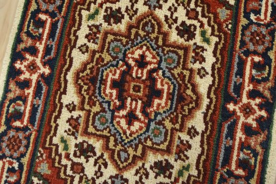 Original Heriz designs are revived in their traditional form. Woven with classic colors and patterns, these rugs capture a timeless look and feel of a style that has been around for generations. Whether in a traditional or country setting, these rugs would be a fine addition to any home.