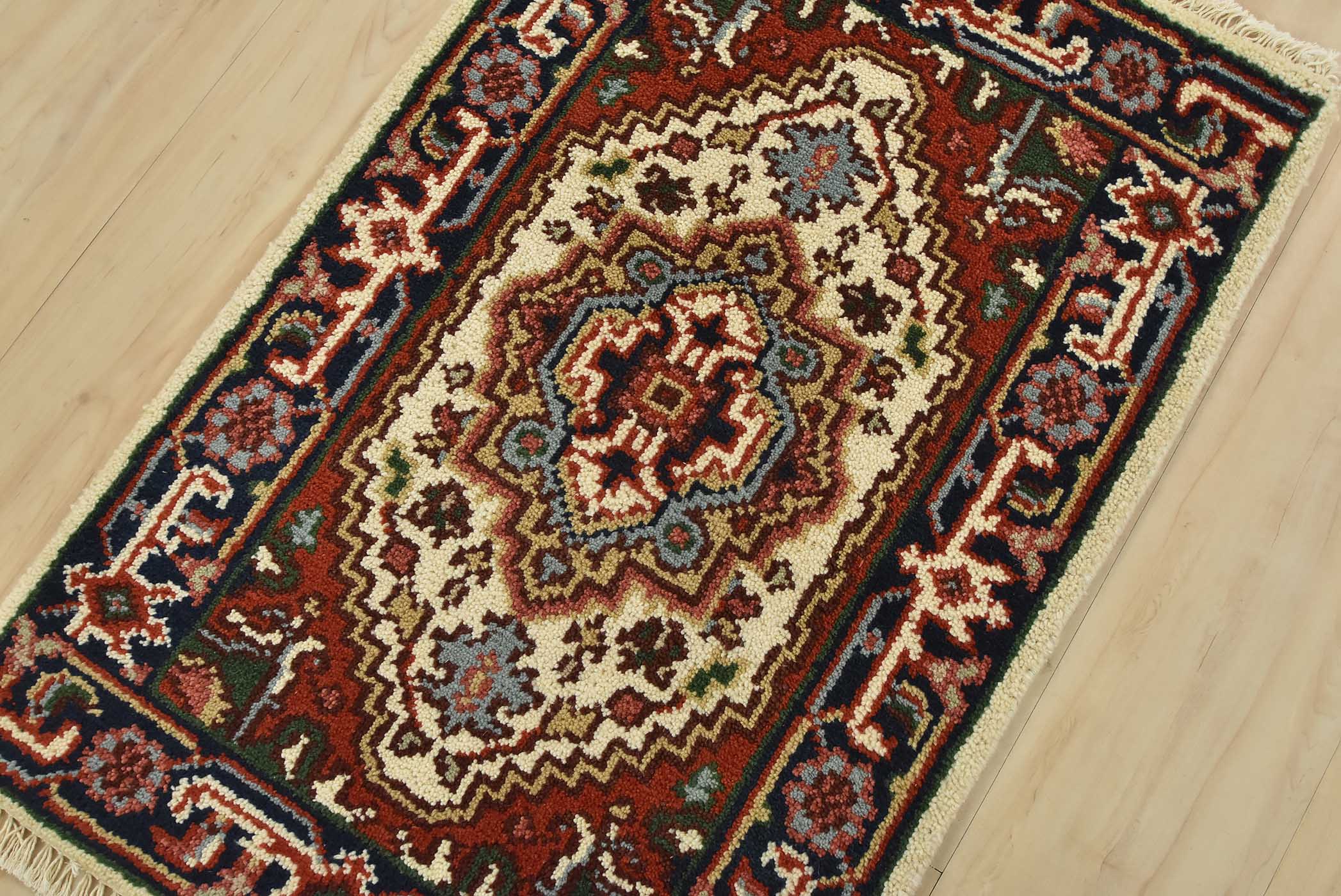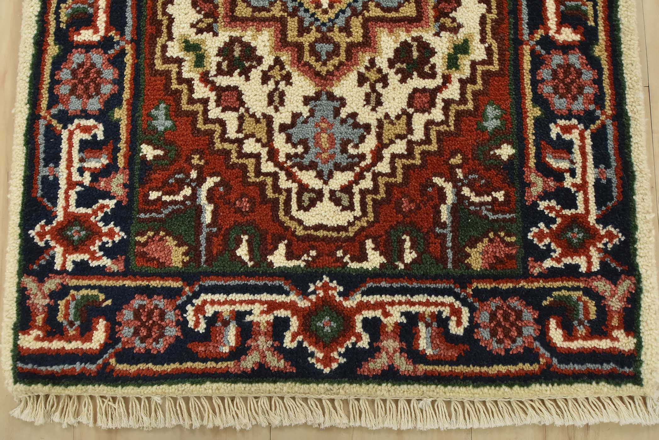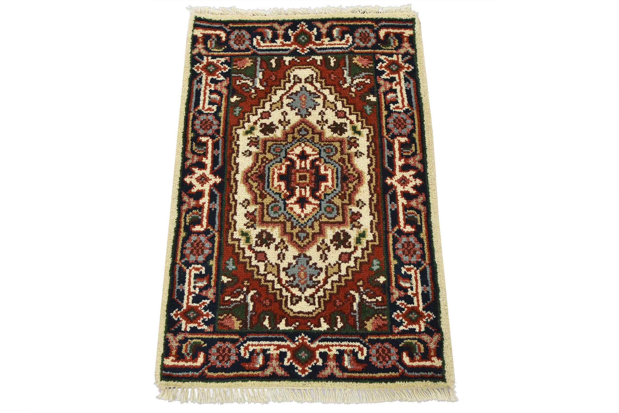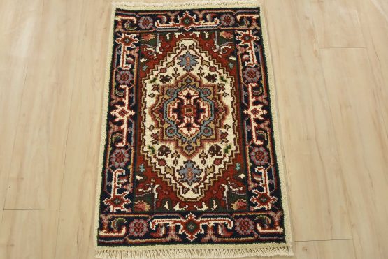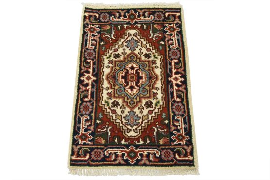 Heriz Rug 2′ x 3’1” Ivory Wool Traditional Hand-Knotted Oriental Carpet
