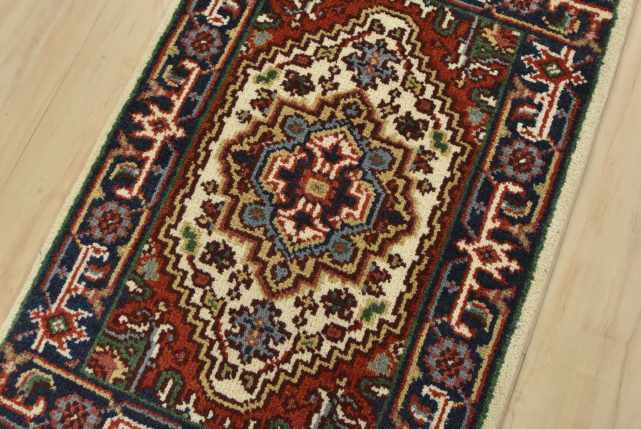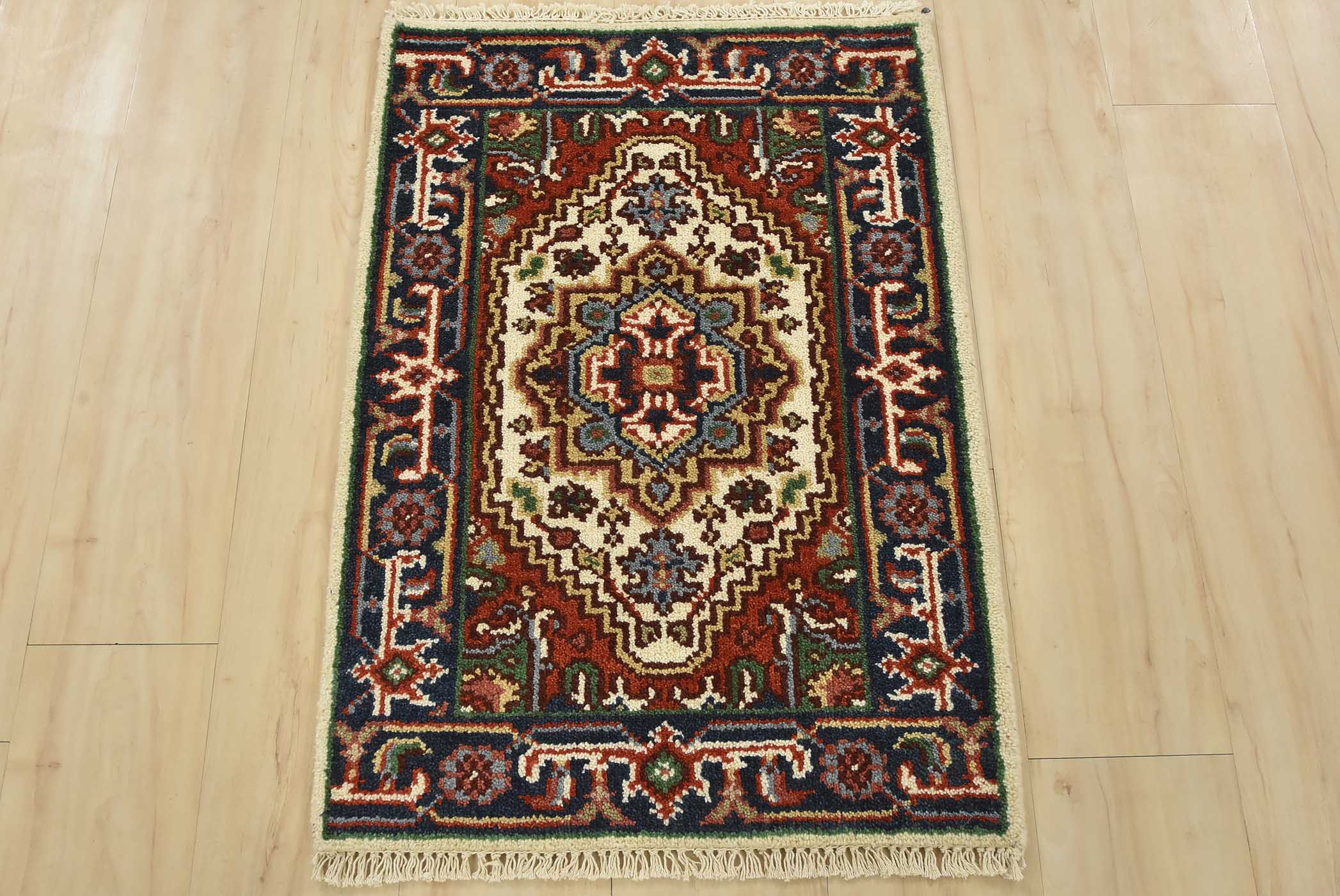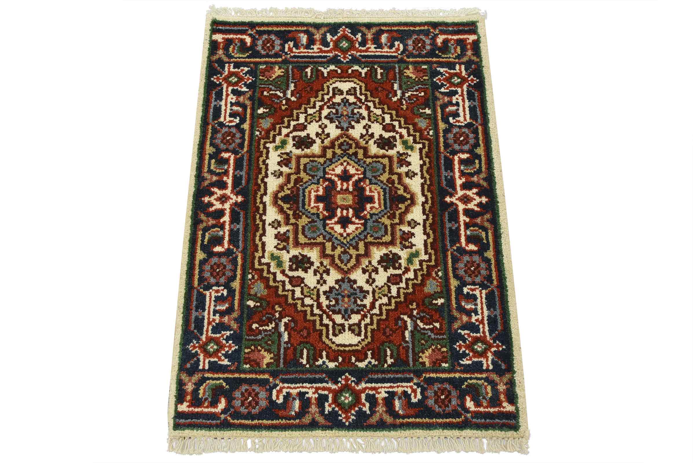 Heriz Rug 2’1” x 3′ Ivory Wool Traditional Hand-Knotted Oriental Carpet