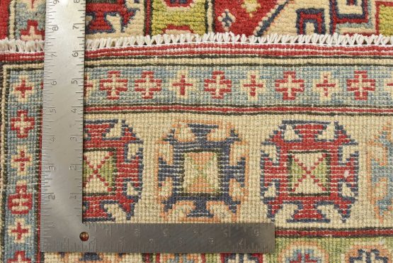 Original antique Kazak rugs from the Caucasus region inspire the creation of new Kazak rugs. These rugs are woven with fine wool using traditional Kazak patterns and finished with a low-cut pile to give them an authentic vintage look.