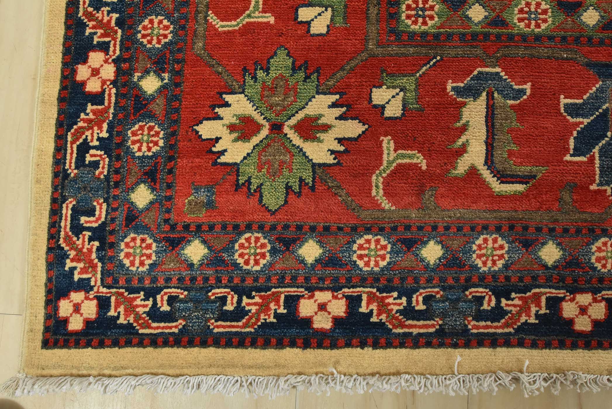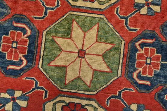 Original antique Kazak rugs from the Caucasus region inspire the creation of new Kazak rugs. These rugs are woven with fine wool using traditional Kazak patterns and finished with a low-cut pile to give them an authentic vintage look.