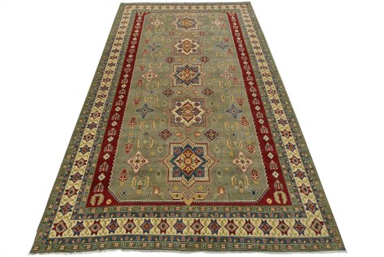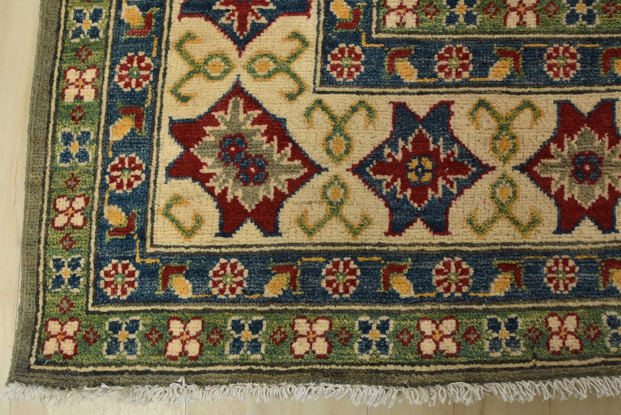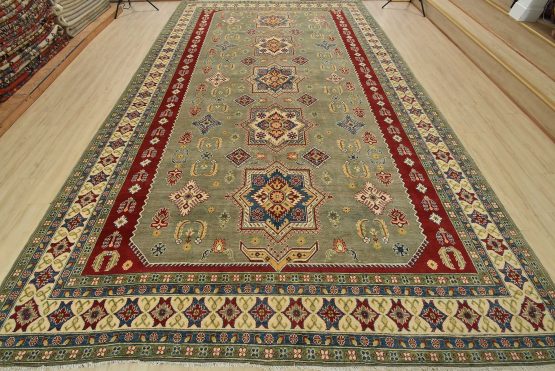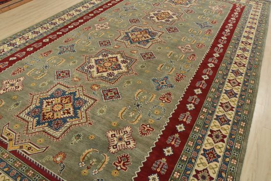 Original antique Kazak rugs from the Caucasus region inspire the creation of new Kazak rugs. These rugs are woven with fine wool using traditional Kazak patterns and finished with a low-cut pile to give them an authentic vintage look.