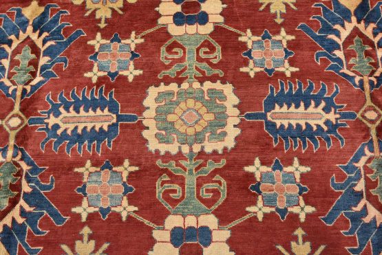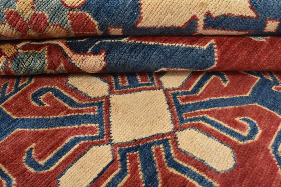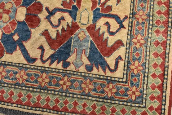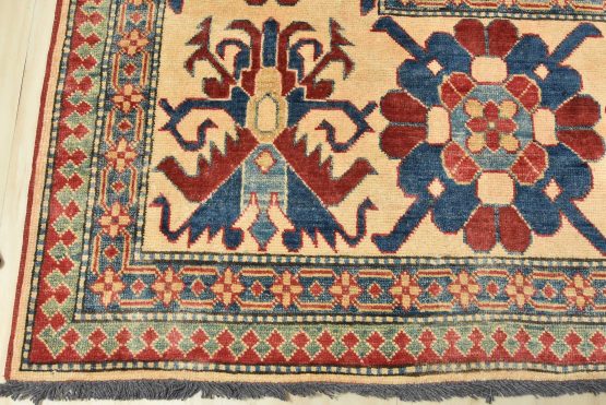 Original antique Kazak rugs from the Caucasus region inspire the creation of new Kazak rugs. These rugs are woven with fine wool using traditional Kazak patterns and finished with a low-cut pile to give them an authentic vintage look.
