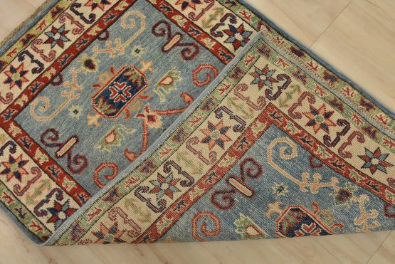Original antique Kazak rugs from the Caucasus region inspire the creation of new Kazak rugs. These rugs are woven with fine wool using traditional Kazak patterns and finished with a low-cut pile to give them an authentic vintage look.