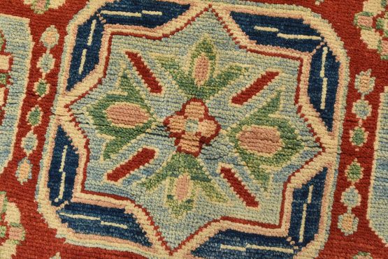 Original antique Kazak rugs from the Caucasus region inspire the creation of new Kazak rugs. These rugs are woven with fine wool using traditional Kazak patterns and finished with a low-cut pile to give them an authentic vintage look.