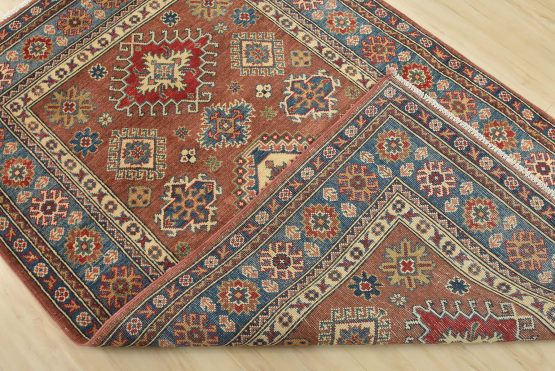 Original antique Kazak rugs from the Caucasus region inspire the creation of new Kazak rugs. These rugs are woven with fine wool using traditional Kazak patterns and finished with a low-cut pile to give them an authentic vintage look.