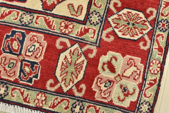 Original antique Kazak rugs from the Caucasus region inspire the creation of new Kazak rugs. These rugs are woven with fine wool using traditional Kazak patterns and finished with a low-cut pile to give them an authentic vintage look.