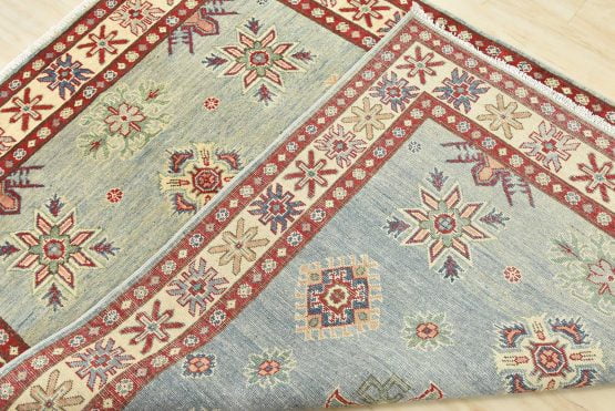 Original antique Kazak rugs from the Caucasus region inspire the creation of new Kazak rugs. These rugs are woven with fine wool using traditional Kazak patterns and finished with a low-cut pile to give them an authentic vintage look.