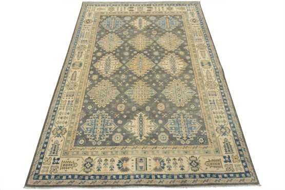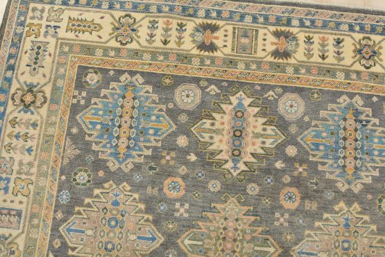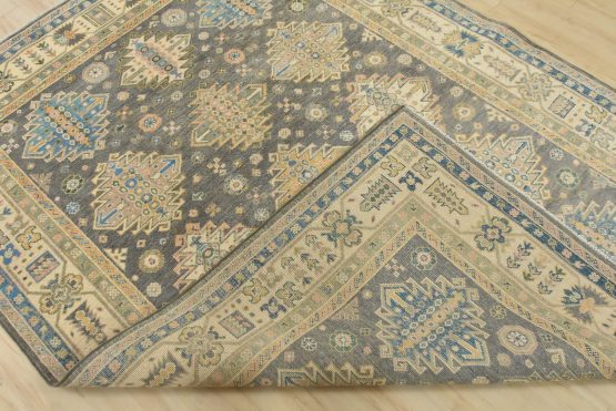 Original antique Kazak rugs from the Caucasus region inspire the creation of Kazak rugs. These rugs are woven with fine wool using traditional Kazak patterns and finished with a low-cut pile to give them an authentic vintage look.