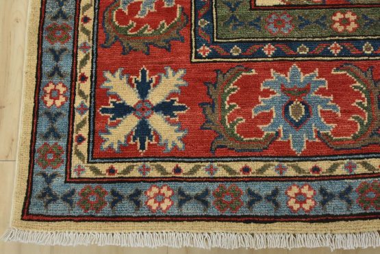 Original antique Kazak rugs from the Caucasus region inspire the creation of Kazak rugs. These rugs are woven with fine wool using traditional Kazak patterns and finished with a low-cut pile to give them an authentic vintage look.