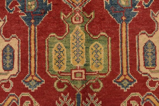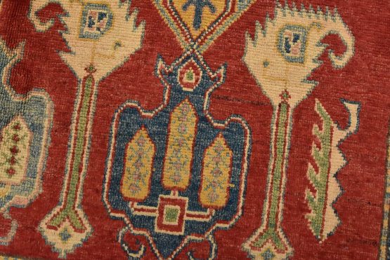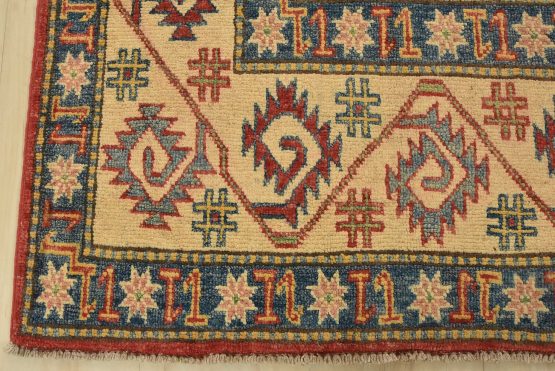 Original antique Kazak rugs from the Caucasus region inspire the creation of Kazak rugs. These rugs are woven with fine wool using traditional Kazak patterns and finished with a low-cut pile to give them an authentic vintage look.