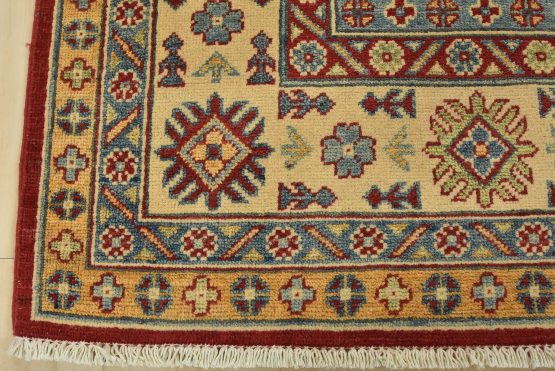 Original antique Kazak rugs from the Caucasus region inspire the creation of Kazak rugs. These rugs are woven with fine wool using traditional Kazak patterns and finished with a low-cut pile to give them an authentic vintage look.