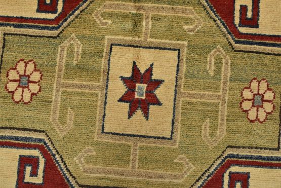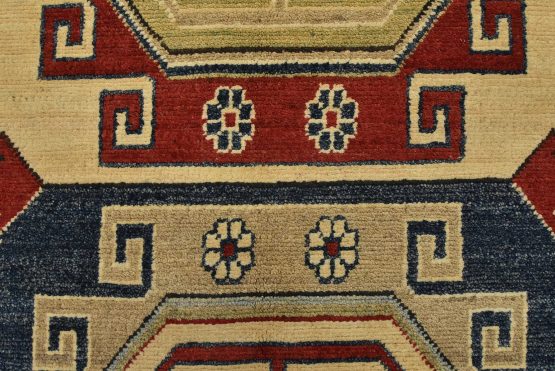 Original antique Kazak rugs from the Caucasus region inspire the creation of Kazak rugs. These rugs are woven with fine wool using traditional Kazak patterns and finished with a low-cut pile to give them an authentic vintage look.