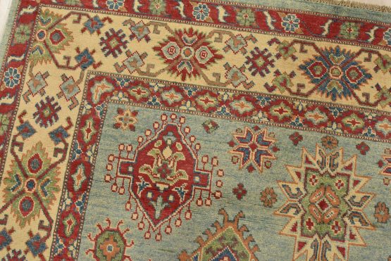 Original antique Kazak rugs from the Caucasus region inspire the creation of Kazak rugs. These rugs are woven with fine wool using traditional Kazak patterns and finished with a low-cut pile to give them an authentic vintage look.
