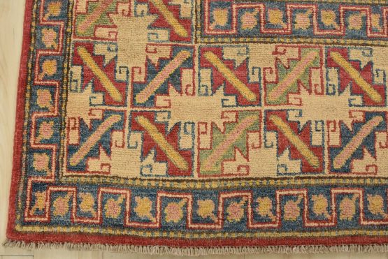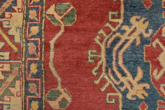 Original antique Kazak rugs from the Caucasus region inspire the creation of Kazak rugs. These rugs are woven with fine wool using traditional Kazak patterns and finished with a low-cut pile to give them an authentic vintage look.