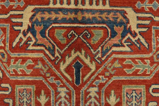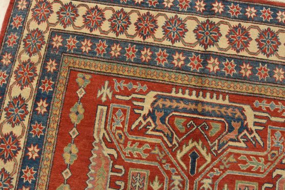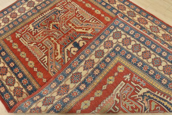 Original antique Kazak rugs from the Caucasus region inspire the creation of Kazak rugs. These rugs are woven with fine wool using traditional Kazak patterns and finished with a low-cut pile to give them an authentic vintage look.