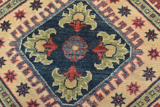 Original antique Kazak rugs from the Caucasus region inspire the creation of new Kazak rugs. These rugs are woven with fine wool using traditional Kazak patterns and finished with a low-cut pile to give them an authentic vintage look.