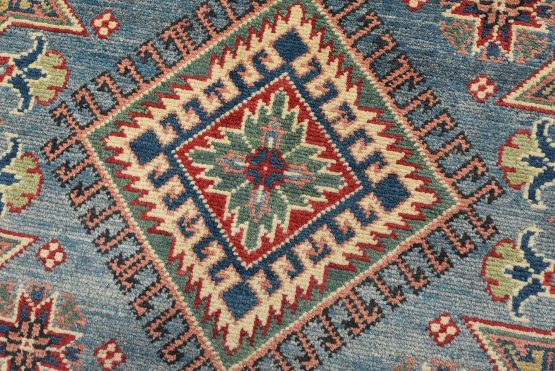 Original antique Kazak rugs from the Caucasus region inspire the creation of new Kazak rugs. These rugs are woven with fine wool using traditional Kazak patterns and finished with a low-cut pile to give them an authentic vintage look.
