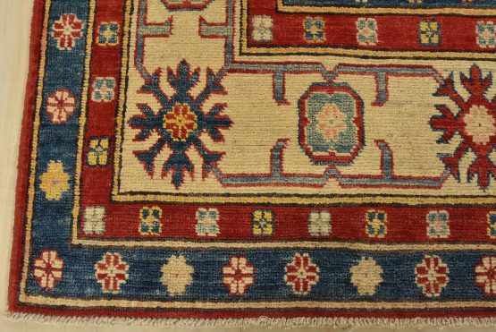 Original antique Kazak rugs from the Caucasus region inspire the creation of Kazak rugs. These rugs are woven with fine wool using traditional Kazak patterns and finished with a low-cut pile to give them an authentic vintage look.