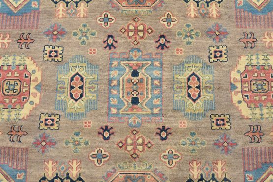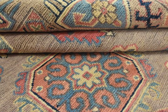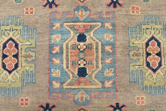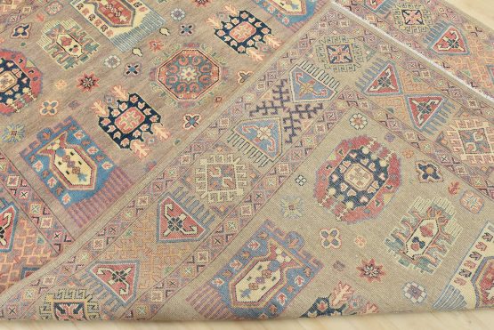Original antique Kazak rugs from the Caucasus region inspire the creation of new Kazak rugs. These rugs are woven with fine wool using traditional Kazak patterns and finished with a low-cut pile to give them an authentic vintage look.