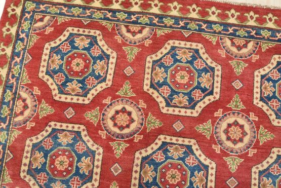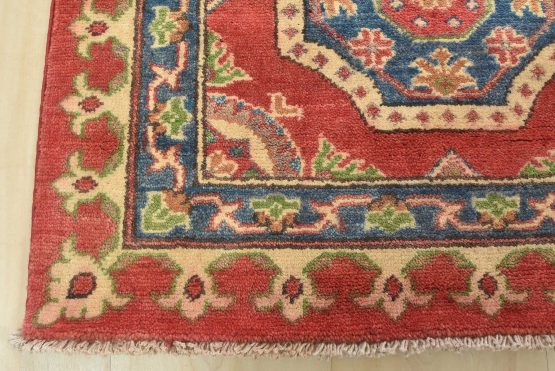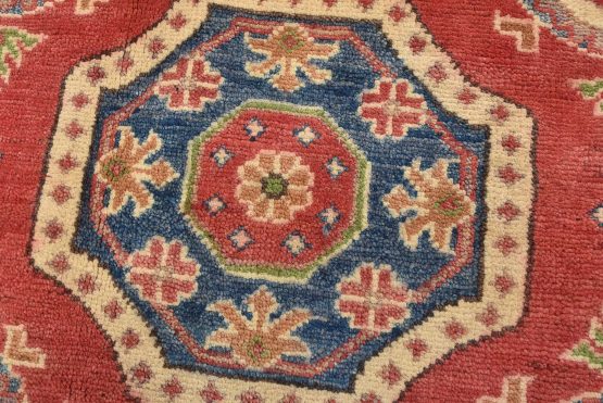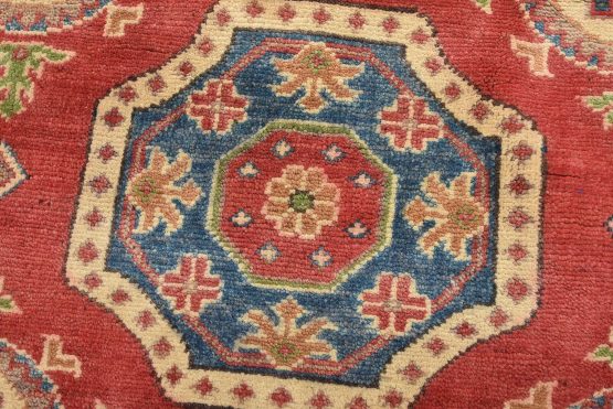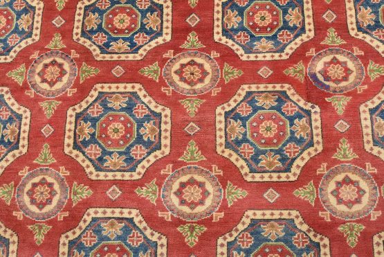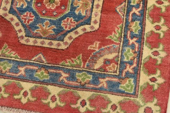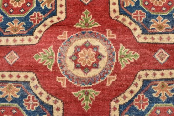 Original antique Kazak rugs from the Caucasus region inspire the creation of new Kazak rugs. These rugs are woven with fine wool using traditional Kazak patterns and finished with a low-cut pile to give them an authentic vintage look.