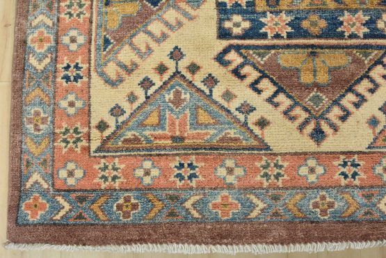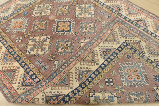 Original antique Kazak rugs from the Caucasus region inspire the creation of Kazak rugs. These rugs are woven with fine wool using traditional Kazak patterns and finished with a low-cut pile to give them an authentic vintage look.