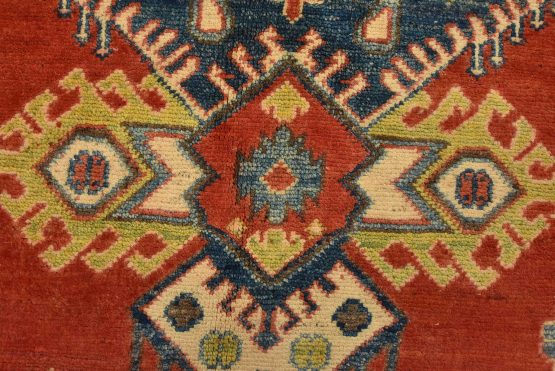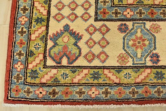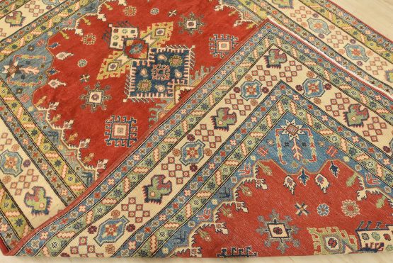 Original antique Kazak rugs from the Caucasus region inspire the creation of Kazak rugs. These rugs are woven with fine wool using traditional Kazak patterns and finished with a low-cut pile to give them an authentic vintage look.