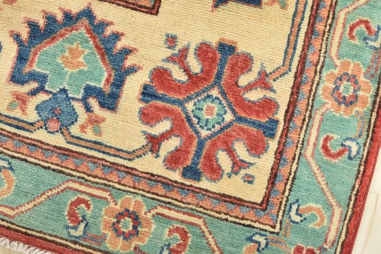 Original antique Kazak rugs from the Caucasus region inspire the creation of new Kazak rugs. These rugs are woven with fine wool using traditional Kazak patterns and finished with a low-cut pile to give them an authentic vintage look.