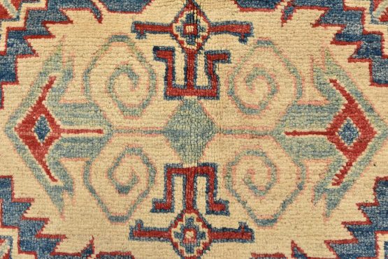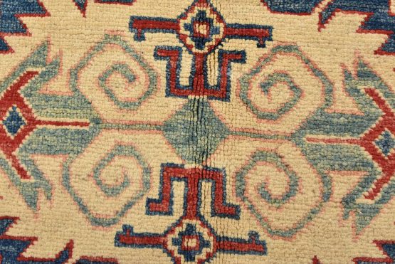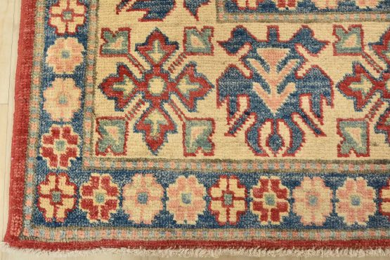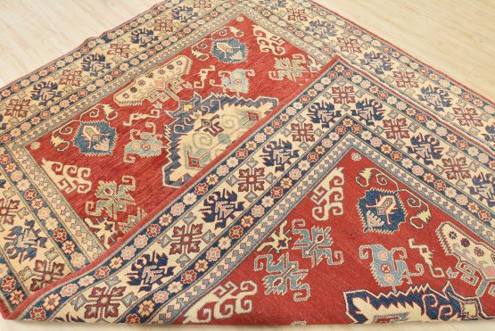 Original antique Kazak rugs from the Caucasus region inspire the creation of new Kazak rugs. These rugs are woven with fine wool using traditional Kazak patterns and finished with a low-cut pile to give them an authentic vintage look.
