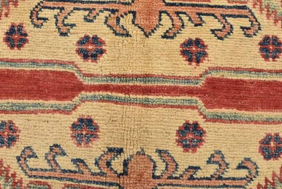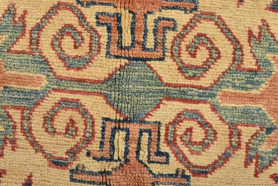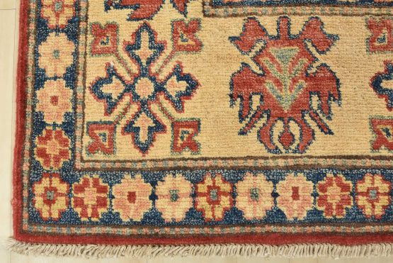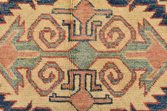 Original antique Kazak rugs from the Caucasus region inspire the creation of new Kazak rugs. These rugs are woven with fine wool using traditional Kazak patterns and finished with a low-cut pile, giving them an authentic vintage look.