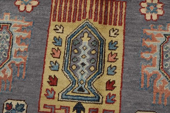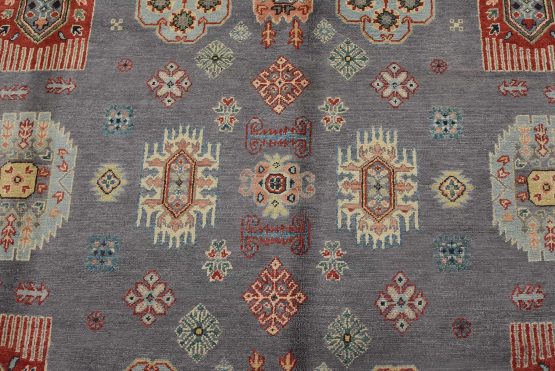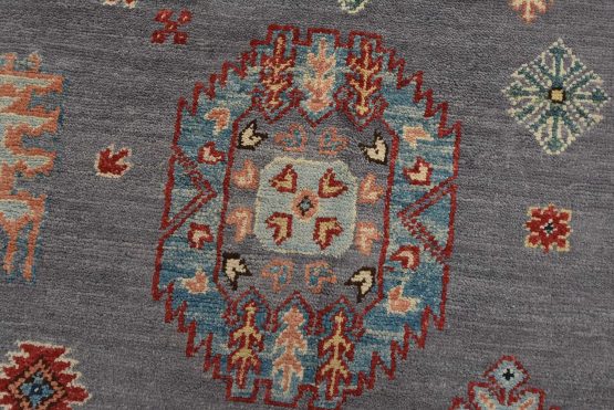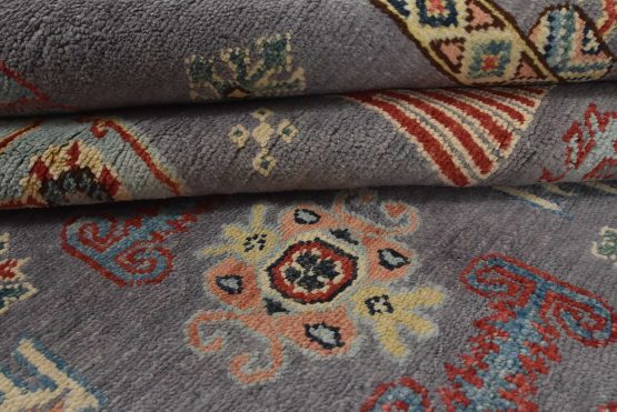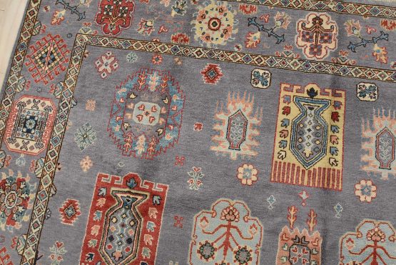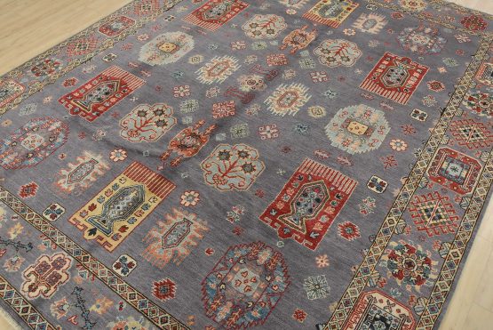 Original antique Kazak rugs from the Caucasus region inspire the creation of new Kazak rugs. These rugs are woven with fine wool using traditional Kazak patterns and finished with a low-cut pile, giving them an authentic vintage look.