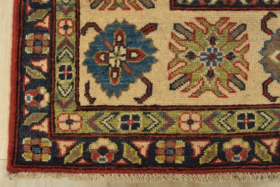 Original antique Kazak rugs from the Caucasus region inspire the creation of new Kazak rugs. These rugs are woven with fine wool using traditional Kazak patterns and finished with a low-cut pile, giving them an authentic vintage look.