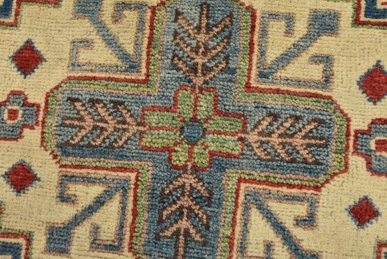 Original antique Kazak rugs from the Caucasus region inspire the creation of new Kazak rugs. These rugs are woven with fine wool using traditional Kazak patterns and finished with a low-cut pile, giving them an authentic vintage look.