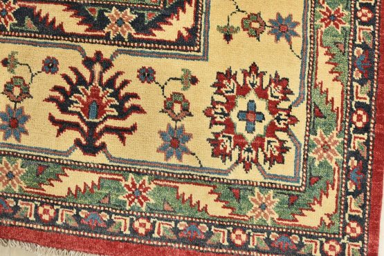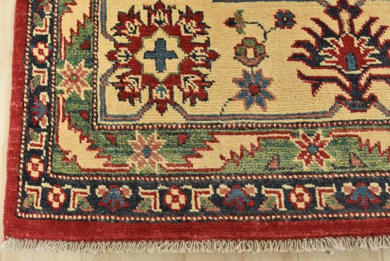 Original antique Kazak rugs from the Caucasus region inspire the creation of new Kazak rugs. These rugs are woven with fine wool using traditional Kazak patterns and finished with a low-cut pile, giving them an authentic vintage look.