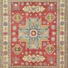 Original antique Kazak rugs from the Caucasus region inspire the creation of new Kazak rugs. These rugs are woven with fine wool using traditional Kazak patterns and finished with a low-cut pile, giving them an authentic vintage look.