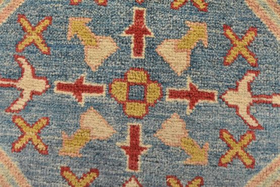 Original antique Kazak rugs from the Caucasus region inspire the creation of new Kazak rugs. These rugs are woven with fine wool using traditional Kazak patterns and finished with a low-cut pile to give them an authentic vintage look.