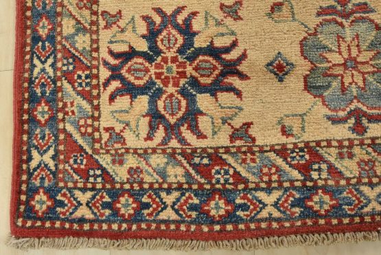 Original antique Kazak rugs from the Caucasus region inspire the creation of new Kazak rugs. These rugs are woven with fine wool using traditional Kazak patterns and finished with a low-cut pile to give them an authentic vintage look.