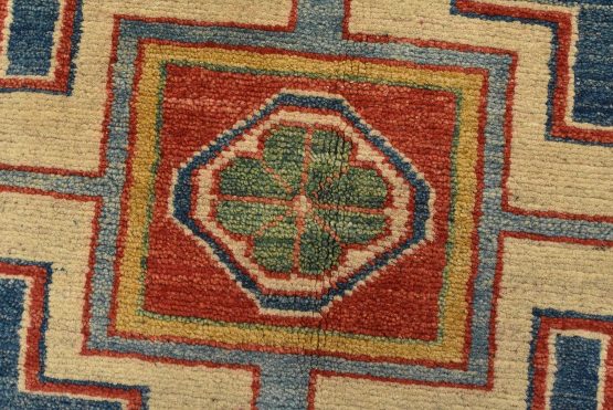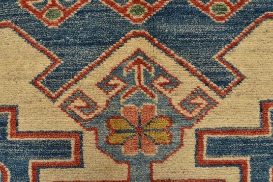 Original antique Kazak rugs from the Caucasus region inspire the creation of new Kazak rugs. These rugs are woven with fine wool using traditional Kazak patterns and finished with a low-cut pile, giving them an authentic vintage look.